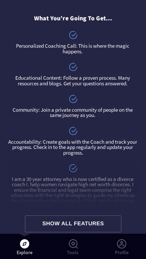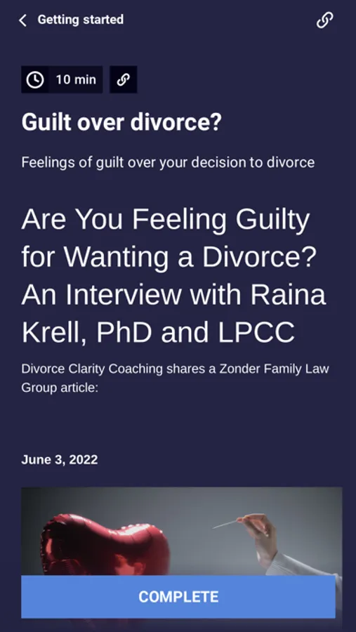 Gut punched by divorce? This divorce coaching app puts you in direct contact with your divorce coach. Access to articles and assessments to help you through your divorce transition and recovery. Join our community & check out the unique content that will help you level up your skills. Installing the app is free of charge.