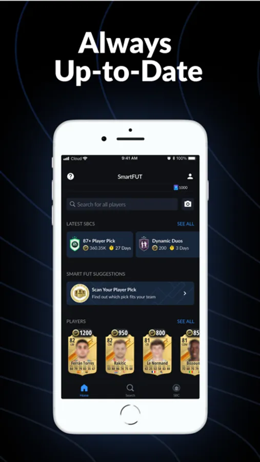 Import your players to Smart FUT quickly with your camera or our browser extension.
