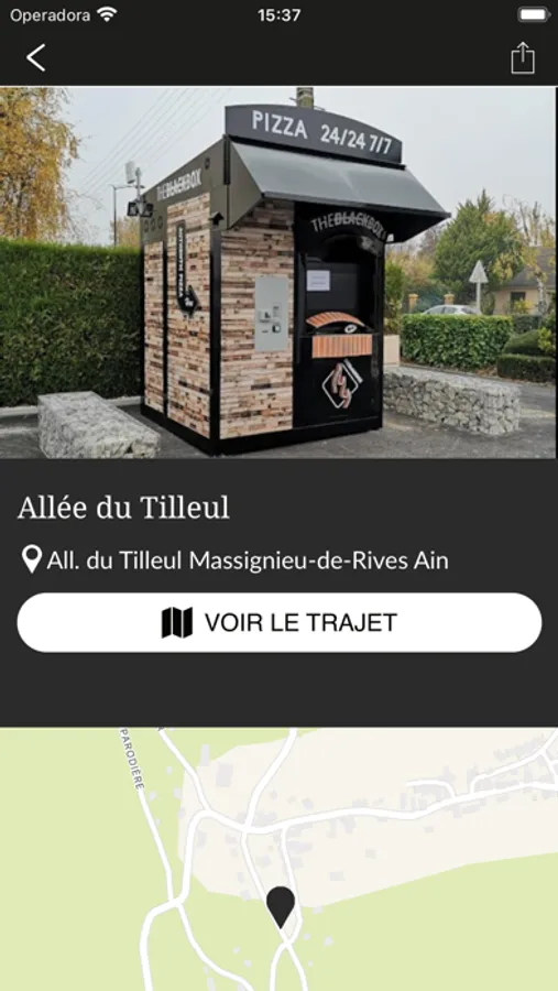 Choisissez votre pizza préférée, payez sur l'application, rendez vous devant le distributeur de pizza THE BLACK BOX le plus proche et dégustez !
