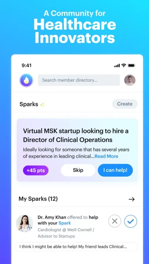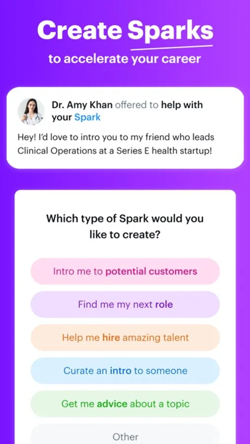 - Interested in a curated intro to someone? Create a spark!