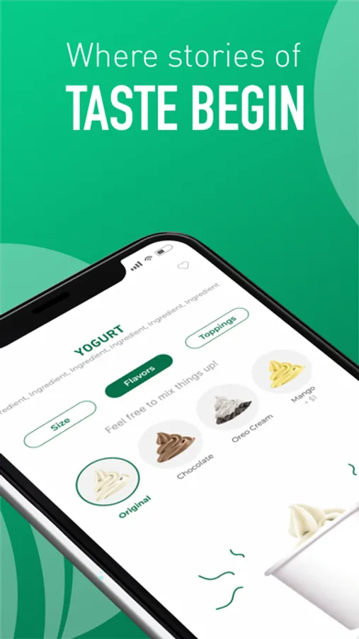 Order frozen yogurt by choosing your favorite flavor and toppings.