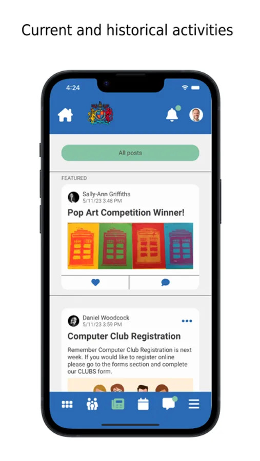 • View the school calendar and noticeboard, with information relevant to you and your child.