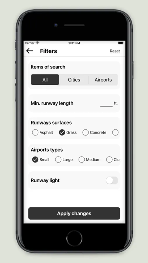 Advanced Airport Search with Filters: Seamlessly find among our extensive built-in database of 75,000+ airports worldwide using powerful filters to refine your search.