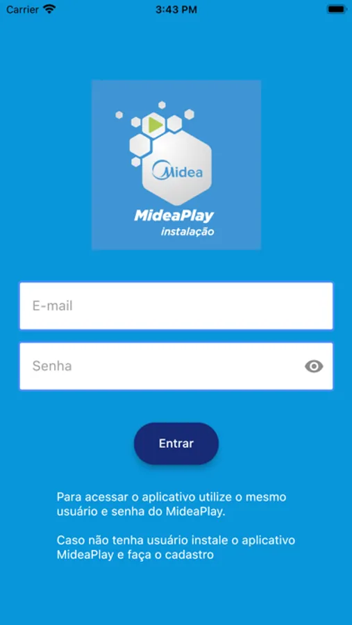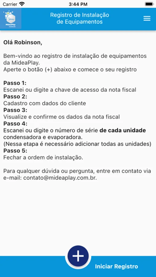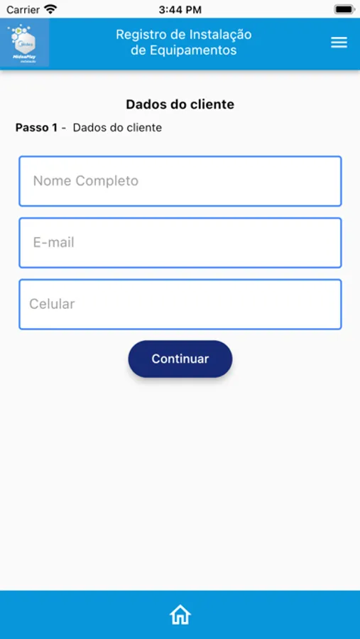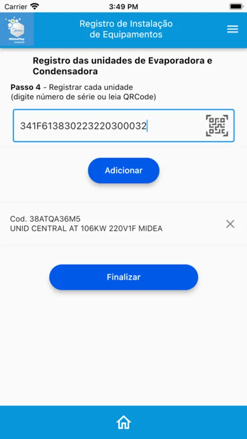 Aplicativo complementar ao MideaPlay para registro de instalação.