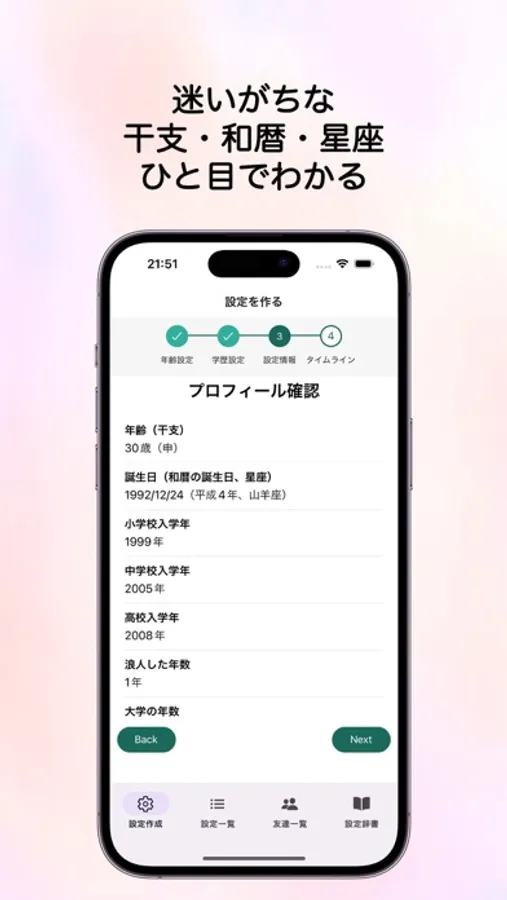 「あの誕生日って昭和何年生まれなんだっけ?」と気になったときは、保存した設定からすぐに確認できます。