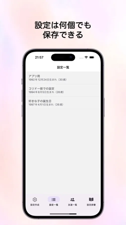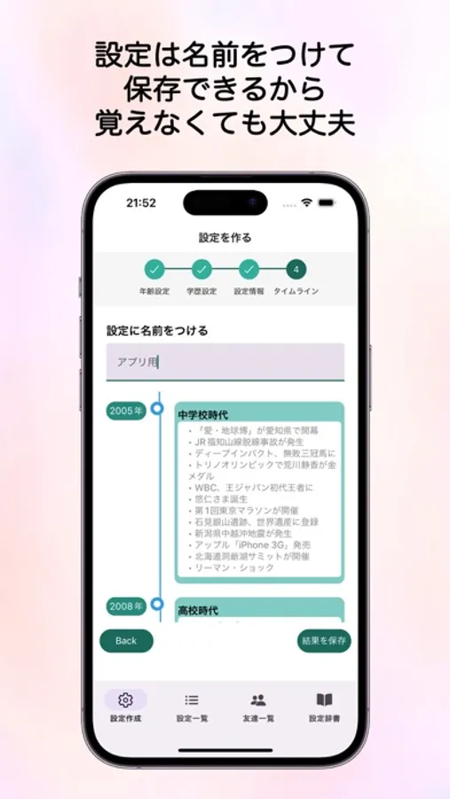 「作成した誕生日」や「作成した年齢」は名前をつけて保存できます。