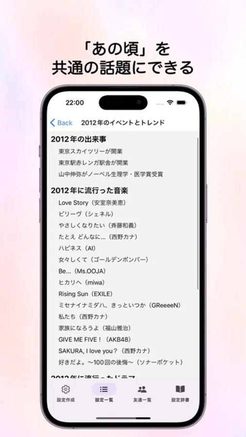 ## あの頃流行った音楽やドラマもわかります!共通の話題にしてください