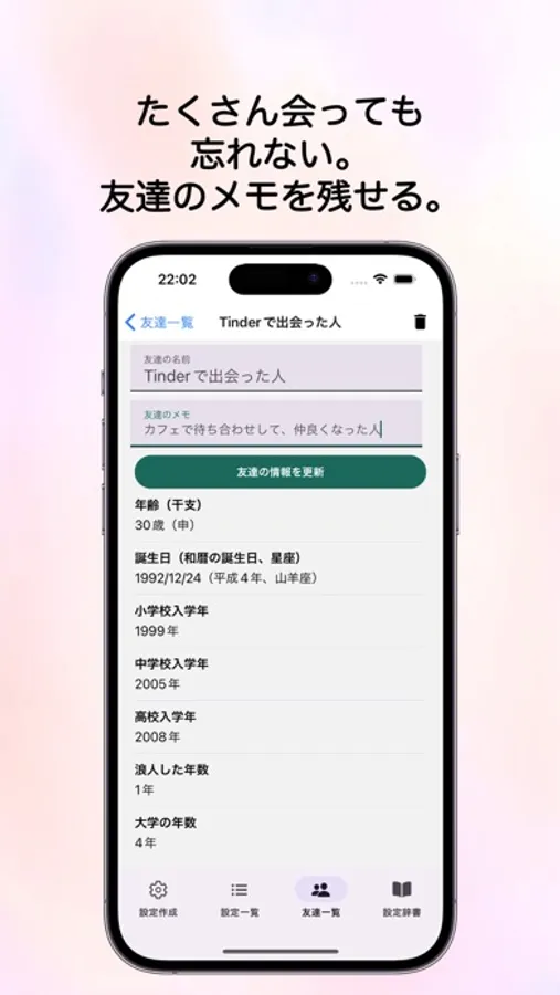 たくさんの友達と会っていると、その人がどんな人だったかわからなくなる...という人も心配いりません。