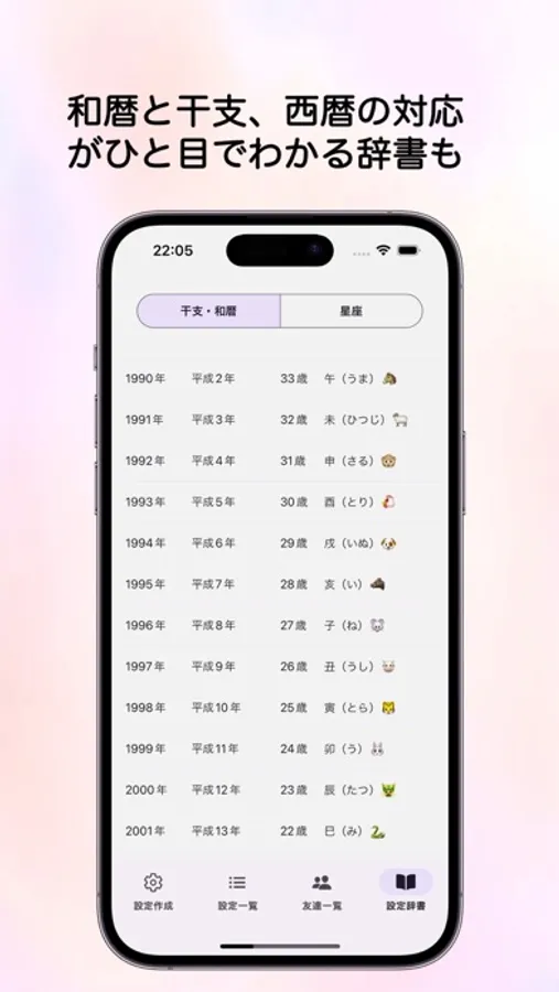 "年齢擬態"は、誕生日や年齢を設定すると、そこから和暦や干支を逆算してくれるアプリです。