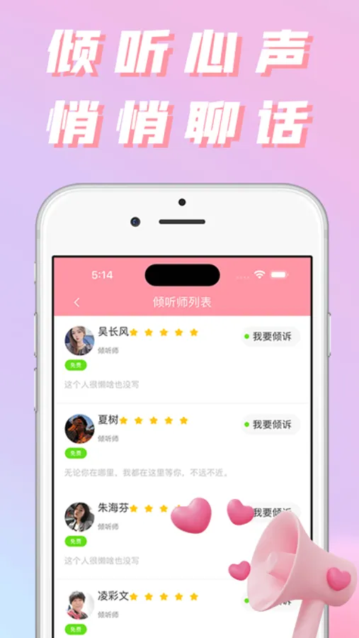 【隐私安全】用户匿名倾诉,文字通话不留痕迹。