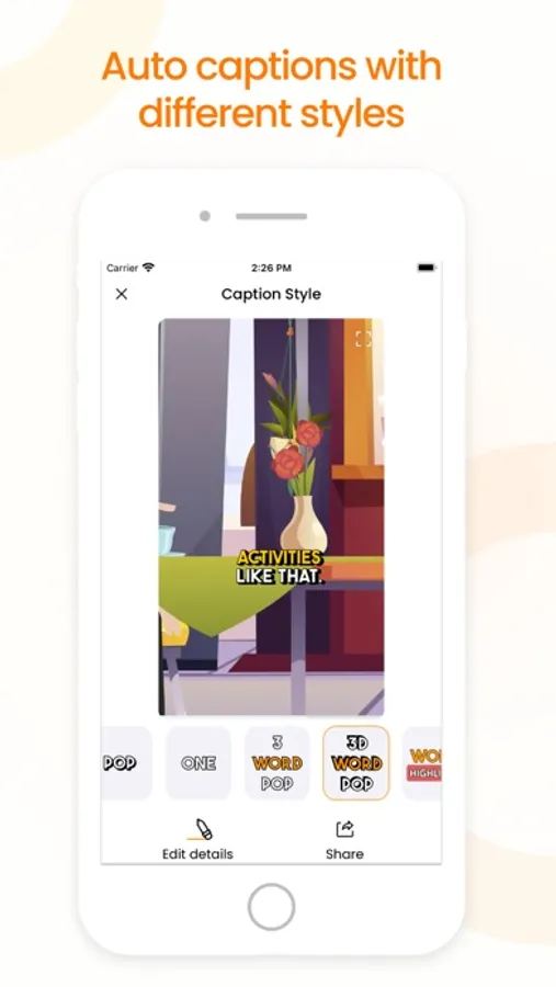- One-tap auto-captioning with a variety of pre-designed caption styles