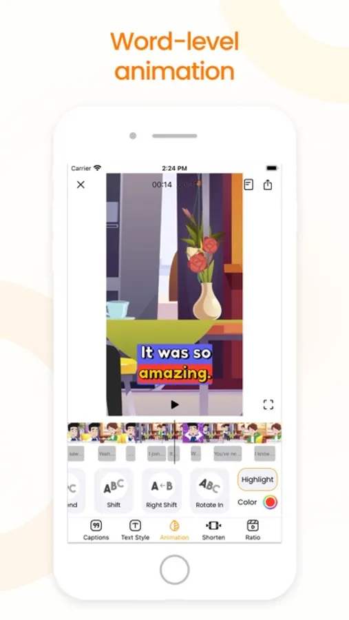 - Support for trending word-level animations, such as pop-out, zoom-in, shift in different directions, and word highlighting