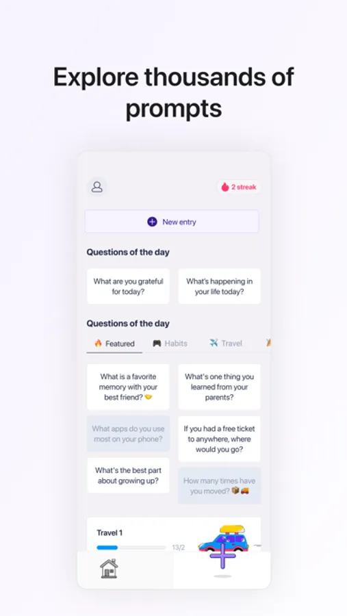New prompts every day to help you explore your own thoughts on everything from current events to your self awareness, relationships, religious beliefs, your travel experiences, etc. etc.