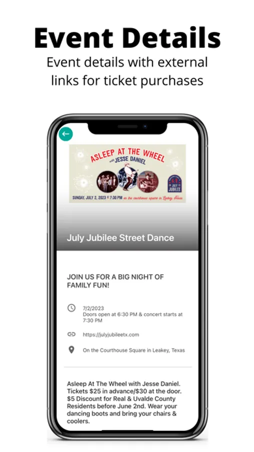 Our initial market is the Frio River Region in the Texas Hill Country. Events in Leakey and Concan are featured. Additional markets will follow.