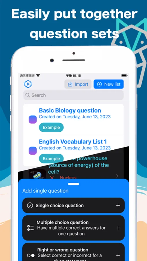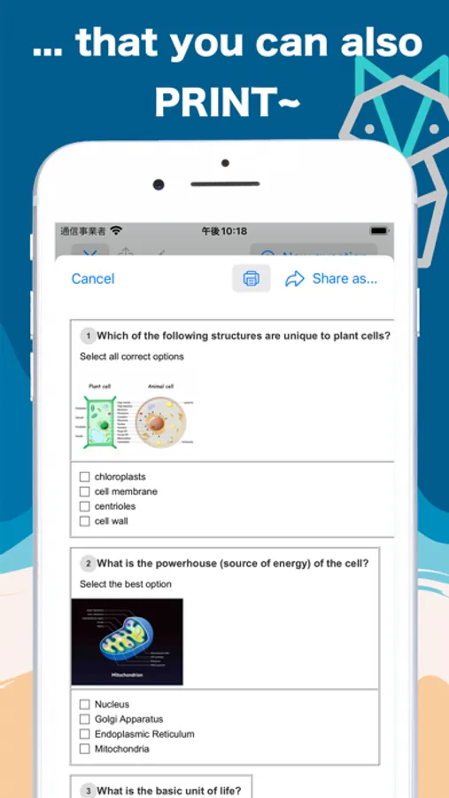 Make your own question sets for test preparation. Take automatically generated quiz. Ask AI to explain any questions. Print the question set. And many more features!