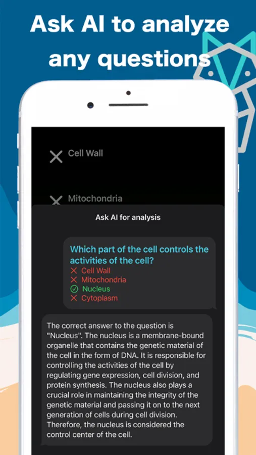 - Ask AI to explain about any quiz questions.