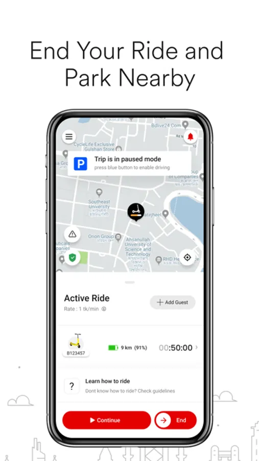 - Park and lock your ride at a nearby, designated pick-up/drop-off location
