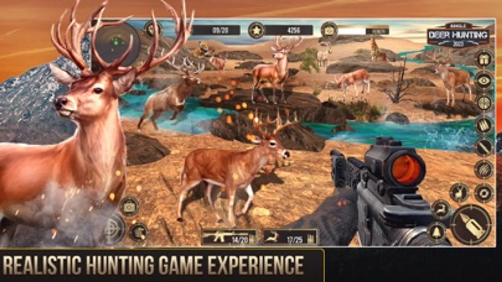 Multiple hunting environments like Snow, Desert and African Jungle is waiting for you. Show your Instincts and don’t let dangerous Species attack you. Become the champion of survival by hunting Deer, Ibex and Stags. Make classic weapons from the bones of animals and use modern weapons for Hunting. Explore new levels and firearms in this deer hunter game for extra ordinary Sniper Shooting experience.