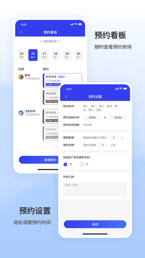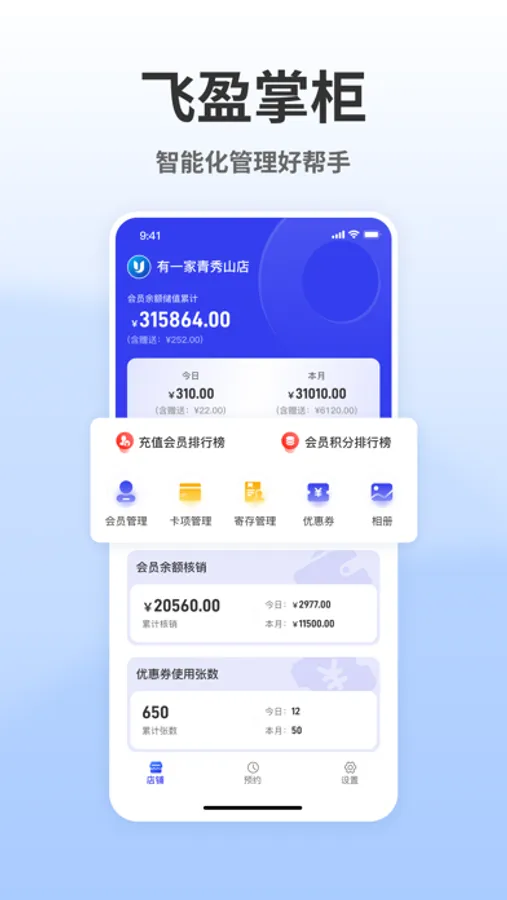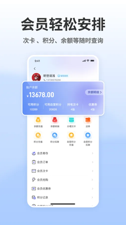 会员管理,用户统计,管理卡项,会员次卡管理,会员预约服务