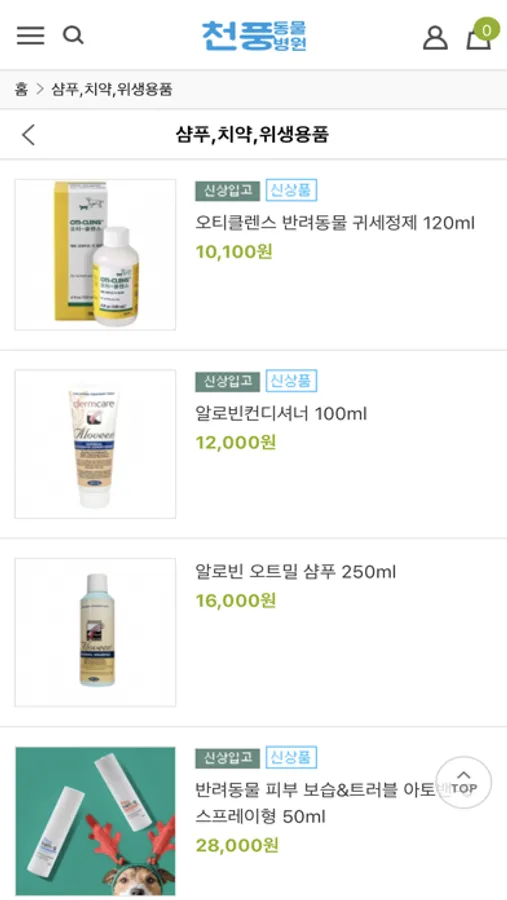 온라인 쇼핑몰 천풍동물병원 직영몰 봉쥬르펫입니다