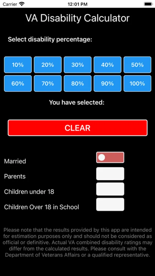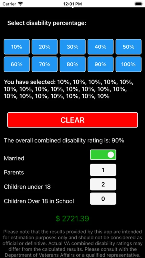 Takes any number of individual disability ratings and calculates the overall and combined rating and provides current compensation amounts. User can select other factors for dependent status to view associated compensation. I am a vet myself and am going through this process and thought this might help others who didn't understand the weird VA math. I am happy to make any suggested changes.