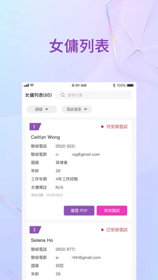 Welcome to our management app designed specifically for partners in the employment industry. With a comprehensive database of domestic helpers from Indonesia, the Philippines, Bangladesh, and more, we have established close collaborations with local offices, training centers, large schools, and medical institutions. We provide comprehensive pre-employment training for all domestic helpers and ensure their quality through a rigorous selection process.Through our app, you can easily manage customer information and domestic helper profiles, efficiently schedule interviews, and perform data analysis to optimize operations. Accessing your account information and staying updated on business dynamics is also effortless. Our management app will help you enhance business efficiency and provide superior service.Download our app now and embark on a journey towards smarter employment management, delivering exceptional service experiences for your partners!