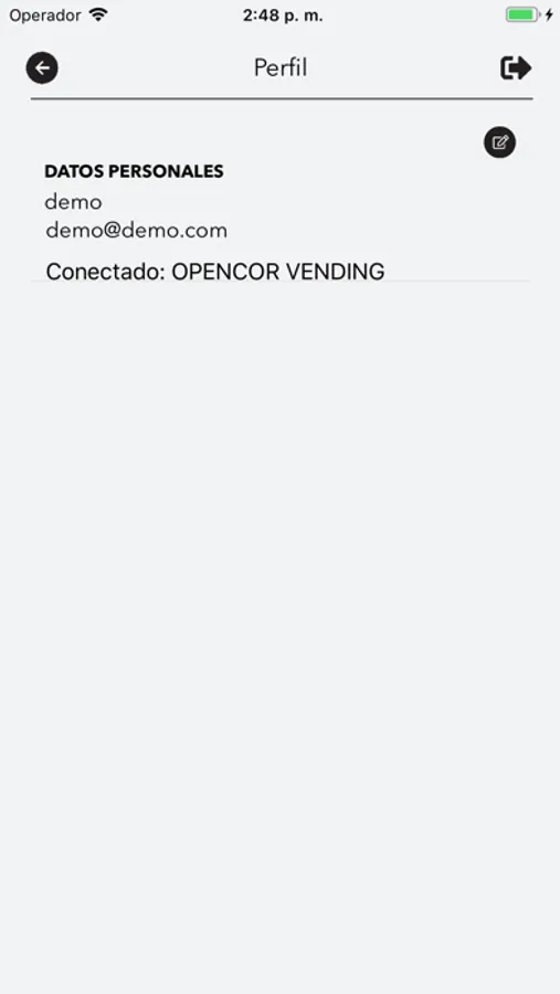 App de Opencor Vending para el pago en máquinas automáticas.
