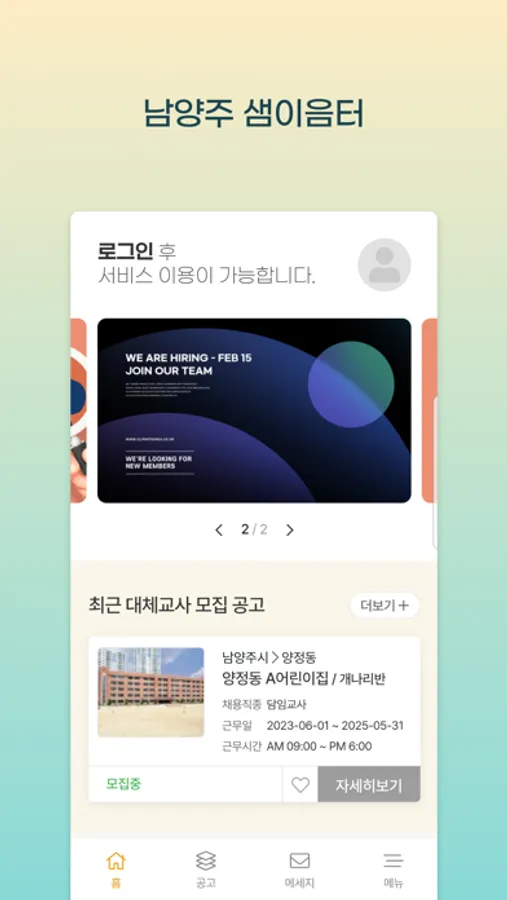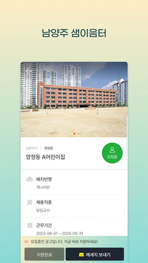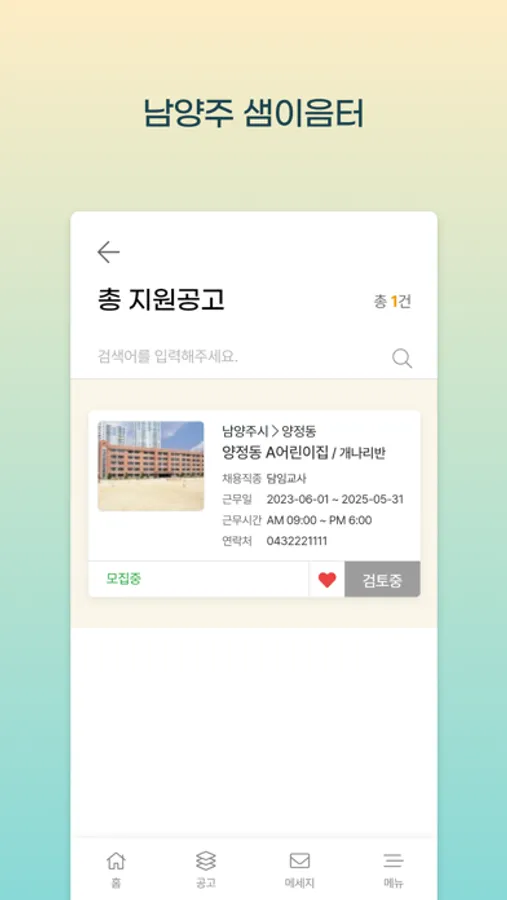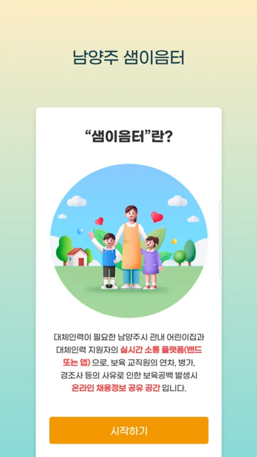 대체인력이 필요한 남양주시 관내 어린이집과 대체인력 지원자 간의 온라인 채용정보 공유 플랫폼 샘이음터