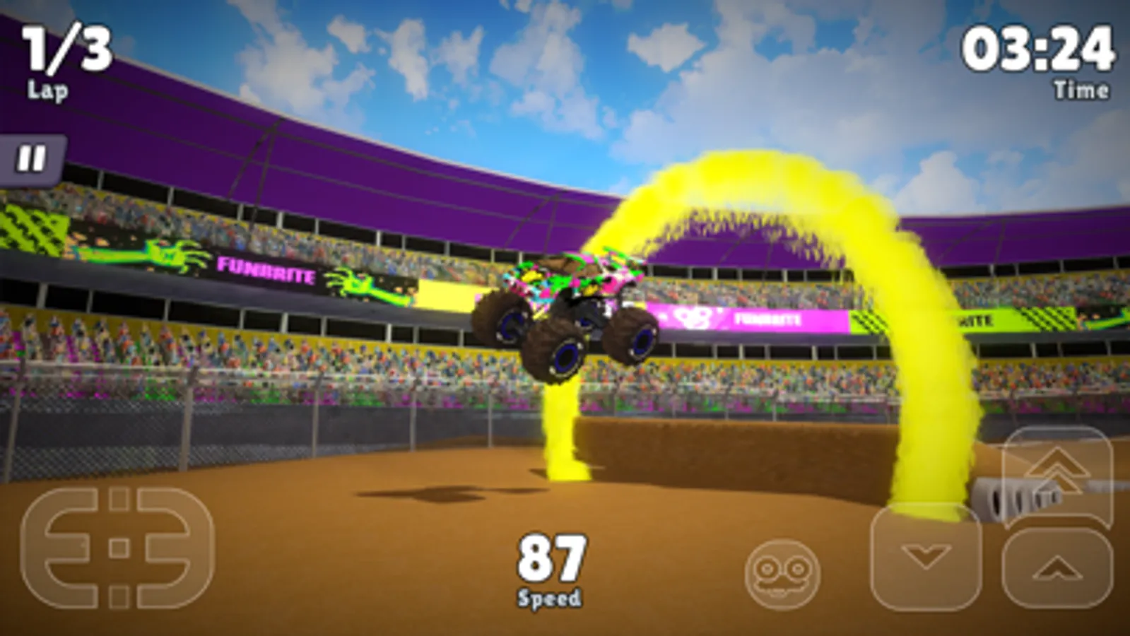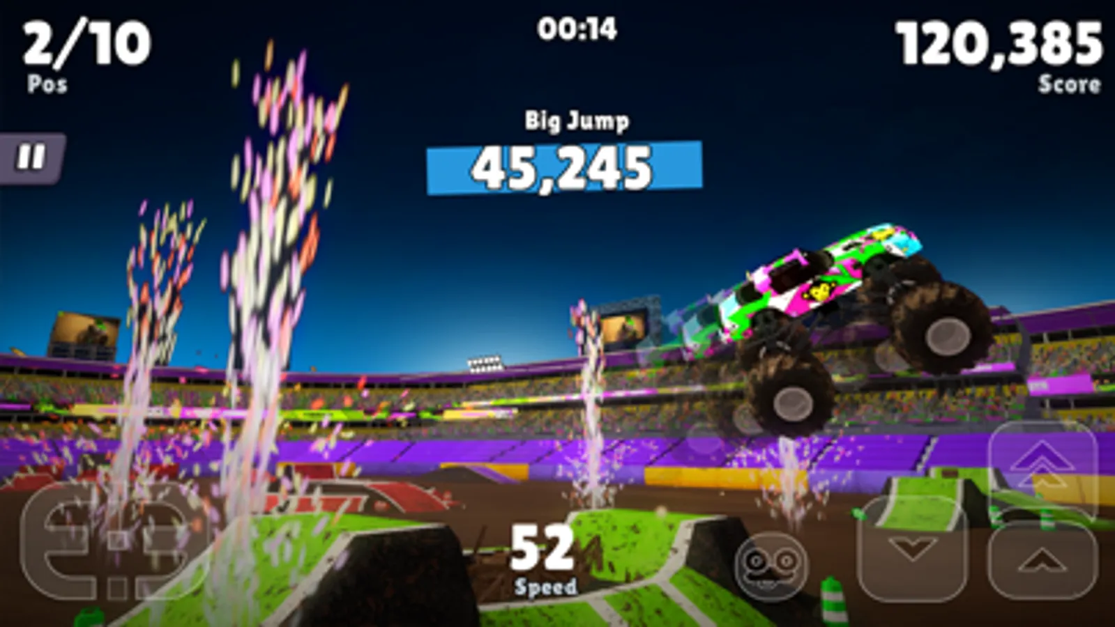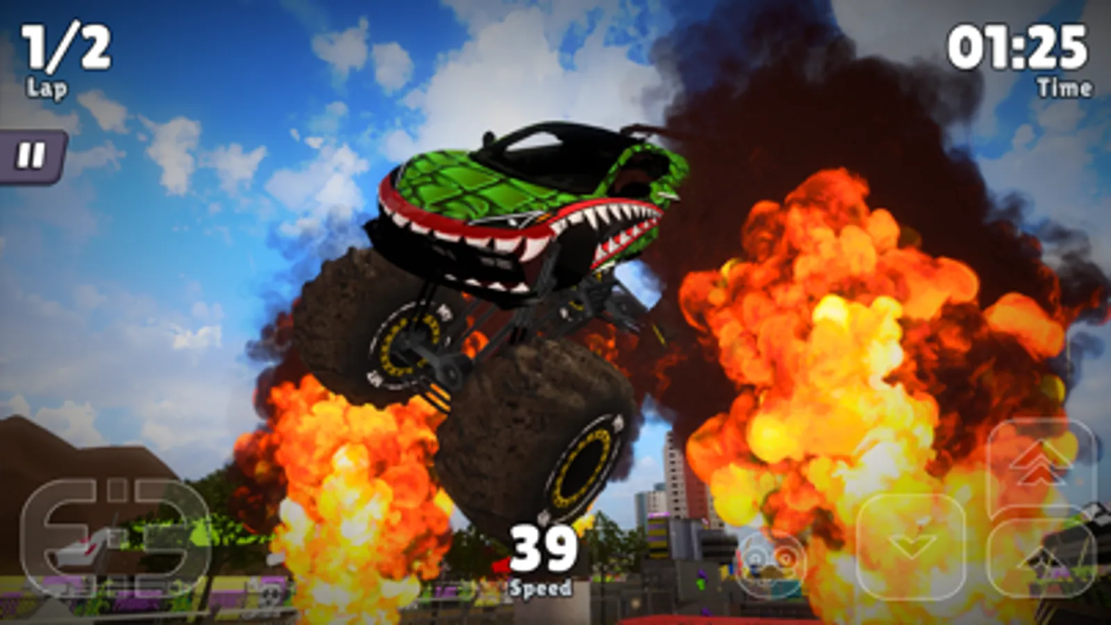 If you're craving an exhilarating global journey, simply tap the Career Button and brace yourself for an unforgettable ride. Unlock new locations and events as you traverse the world in style. Need a boost? Accelerate or halt your truck with ease using the arrows in the bottom right corner. Don't forget to master the steering wheel, controlled by the arrows in the bottom left corner. And should you veer off course, fear not! A quick tap on the icon with the overturned truck will swiftly place you back on track. Embark on daring stunts, amass fantastic rewards, and leave a trail of awe in your wake. At the end of each race, revel in the glory of trophies, coins, and chests as your well-deserved prize. These treasures will prove invaluable when you step into the garage. Customize your truck to reflect your unique style, tweaking both its appearance and performance to conquer the races that lie ahead. Explore a range of vibrant colors and playful patterns to make your monster truck truly your own. Enhance its speed, power, steering, stability, and weight in the stats section. And if the incredible Phoenix Cruiser doesn't quite meet your expectations, fear not! Earn ample coins to acquire another awe-inspiring truck. Remember, the number alongside the truck's name indicates its quality—opt for the legendary Number 1 monsters to dominate the competition. The more you play, the faster you'll ascend the ranks, unlocking new possibilities and thrills. Ready to take your monster truck to the next level? Visit the garage and tap the upgrade button to enhance its performance. Be prepared to part with some golden coins in exchange for this remarkable improvement. Personalize your driver's name to something that resonates with your spirit. Indulge in a shopping spree to acquire new items like helmets and vibrant equipment that perfectly complement your prized monster truck. The driver stats section meticulously tracks your race history, medals earned, and owned vehicles, providing a wealth of crucial information. Return to the main menu, where four empty slots eagerly await your conquests. Fill them with chests earned through races, unlocking a world of possibilities. Don't miss out on daily rewards and extraordinary prizes—tune in every day to elevate your monster truck journey.