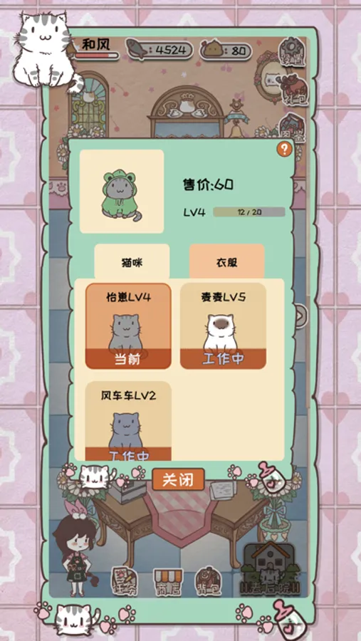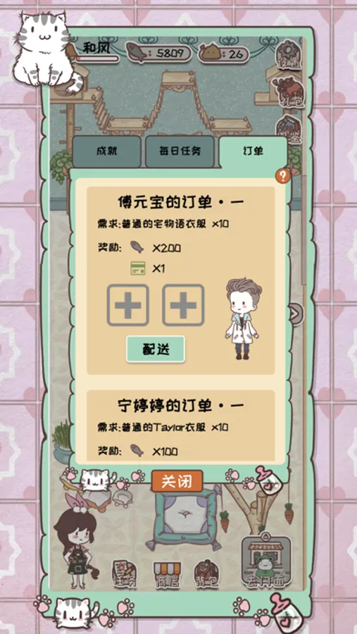 经营制作猫咪服装并出售 赚取小鱼干升级店铺