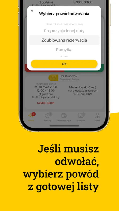 - Jeśli nie możesz przyjąć rezerwacji podaj szybko powód i inny termin