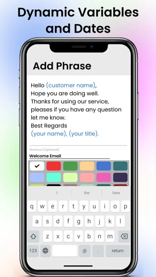 Add Quick Replies as a keyboard, then Access with just one touch, like using an emoji. Create templates and respond to all messages quickly. Unlimited ready-to-use replies, and phrases with a tap of the keyboard.