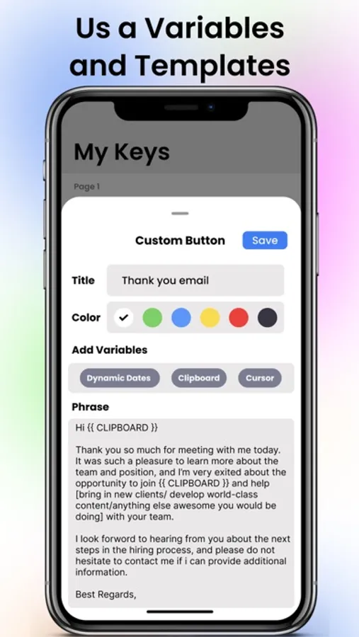 Quick Replies is a well-optimized keyboard app. You can create and save tons of message templates instead of typing the same text over and over again. Paste-Keyboard Function is active too. Tap once to send a message or tap and hold and you can send the message a hundred times over.