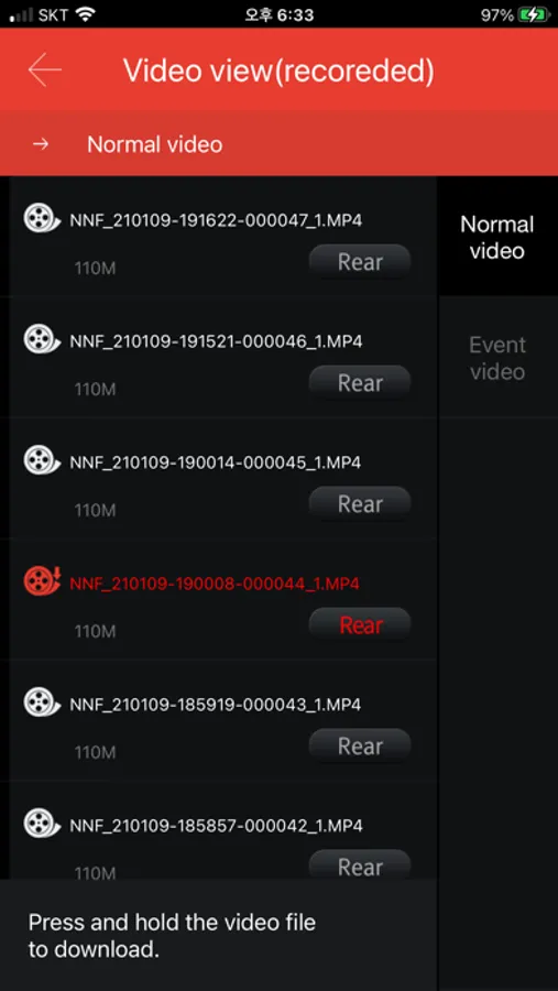 - File separator between front/ rear video file: Front/ rear video files are separated to save that can check and both of them even through media-player