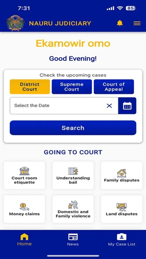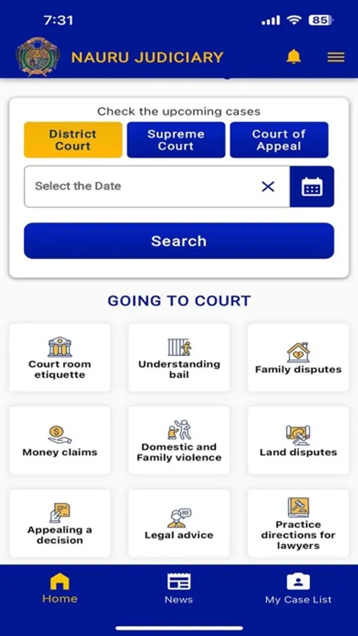Stay informed and engaged by accessing news, events, and other essential information related to the Nauru judiciary, and can access the Nauru judiciary website via the app.