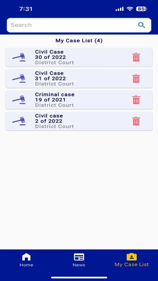 With a user-friendly interface, you can easily search for cases by date, gaining access to the entire list of cases scheduled for a specific day. Additionally, the app allows you to maintain a personalized list of cases and you can add cases to my list by searching them by the date, case number, or parties' names. Stay on top of your cases with timely pop-up reminders on the day of each hearing.