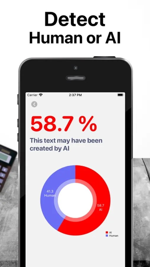 Introducing AI Detector, the ultimate app for detecting the authenticity of written text and differentiating between human-generated and AI-generated content. With AI Detector, you'll never have to second-guess whether the text you're reading was written by a human or an AI. Our advanced technology analyzes each text and provides you with accurate results, ensuring content authenticity with over 99% accuracy.