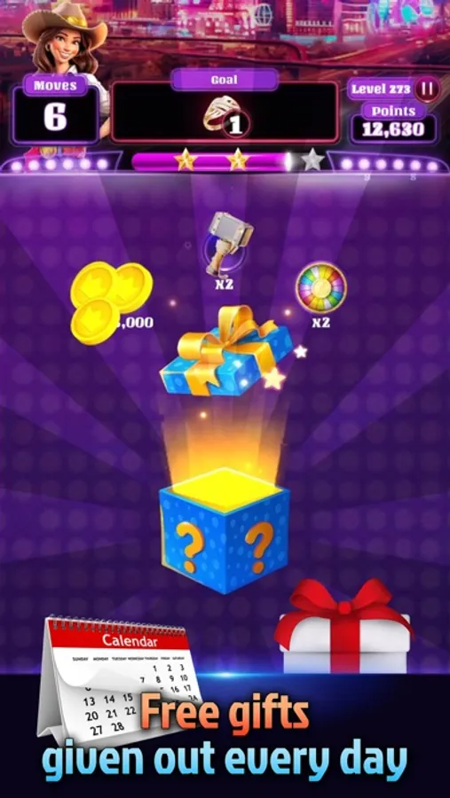 Receive free coins while enjoying match 3 puzzles and spinning slot machines together.