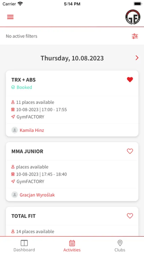 Aplikacja dla klubowiczów GymFactory.