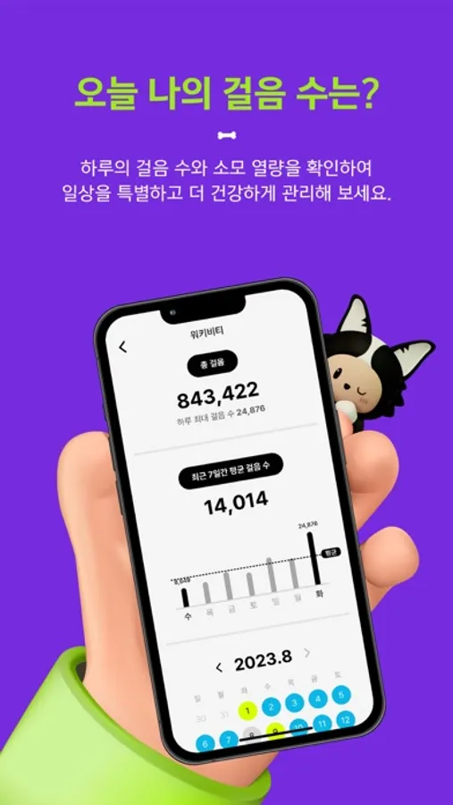 - 하루의 걸음 수와 소모 열량을 파악하여 매일 걷는 일상을 특별하고 더 건강하게 관리해 보세요.