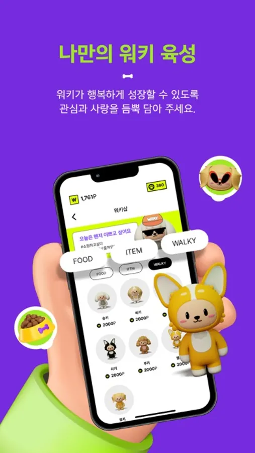 걸음 수에 따라 획득 가능한 재화로 나만의 워키를 육성하는
