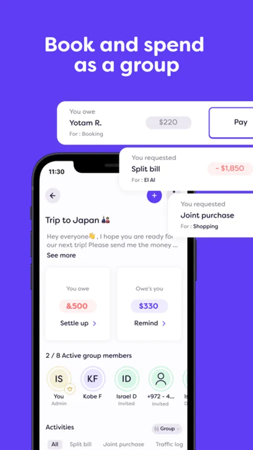 It's time to bid farewell to the hassle of calculating multiple currencies and transactions. LAYA's settle-up feature simplifies the process, making sure you leave no financial loose ends behind.