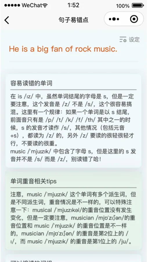 【单词发音纠正】本软件可以识别用户读单词中的每一个音素,然后反馈给用户读音是否标准,哪些音没有读出来,重音位置是否读正确了等,让用户可以提升自己英语发音。