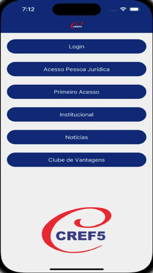 Aplicativo do CREF5/CE contendo notícias do conselho, a possibilidade de consultar e alterar dados cadastrais e realizar pagamento das anuidades do conselho.
