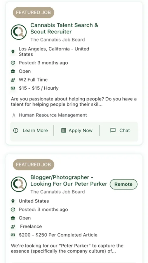 Find Your Dream Job in Cannabis. Search Jobs. Upload Your Resume. Showcase Your Talent. Chat with a Recruiter, Interview And Get Hired Now!