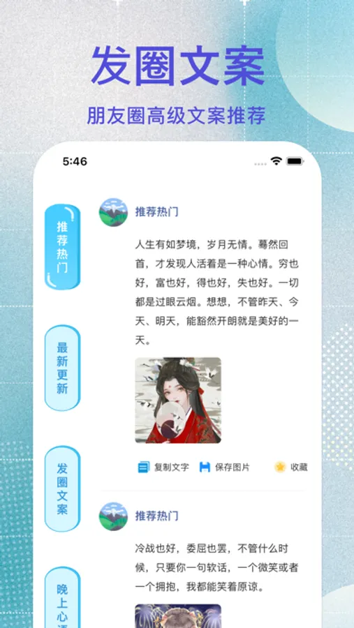 朋友圈火爆文案支持一键复制。