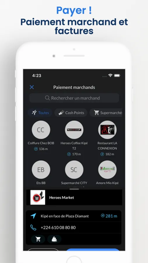 • Paiement dans les restaurants, hôtels, discothèques, supermarchés, pharmacies, etc.