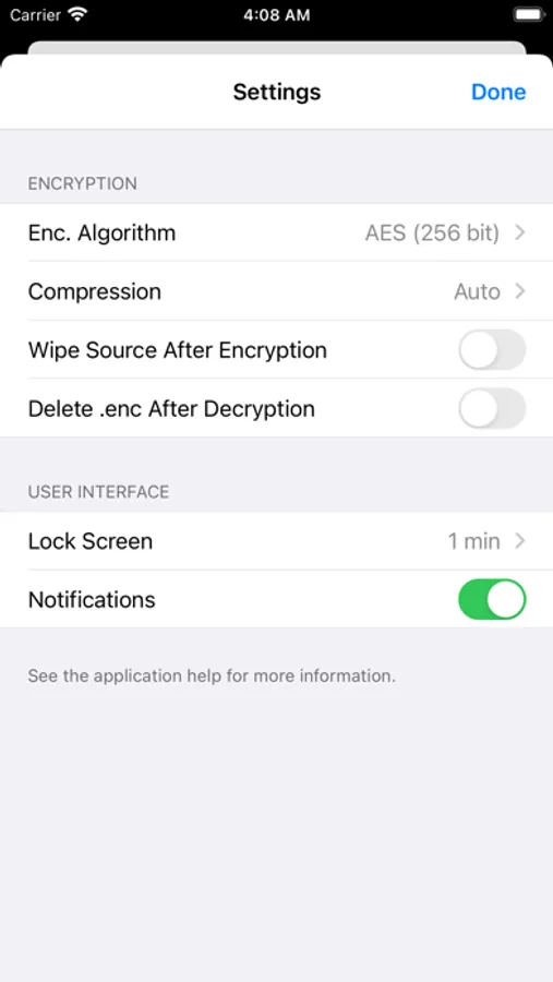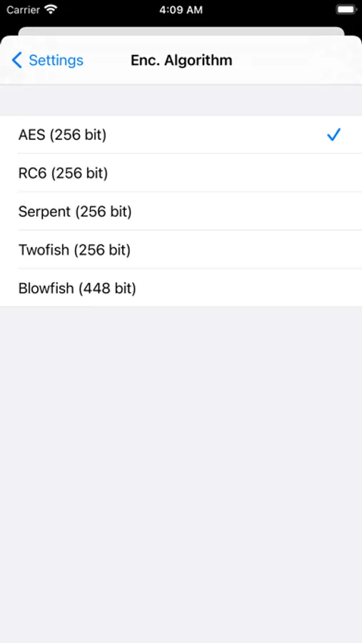 • The app guarantees real security by encrypting data using robust encryption algorithms: Blowfish 448 bits, AES 256 bits, RC6 256 bits, Serpent 256 bits, and Twofish 256 bits ciphers.