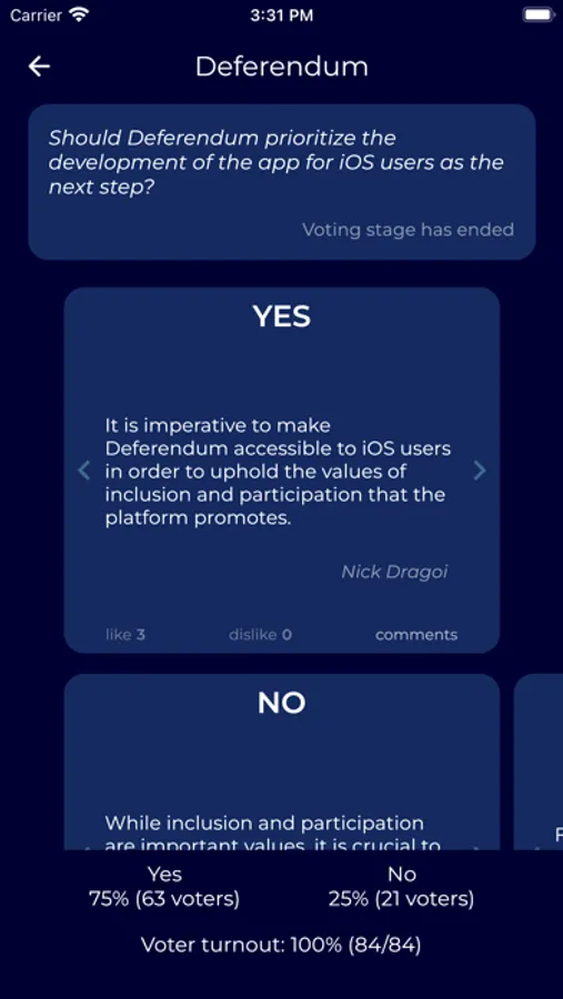 Sunt încântat să anunț că, începând de acum, vom adopta o nouă abordare pentru gestionarea aplicației Deferendum. În spiritul transparenței și al incluziunii, vom folosi aplicația Deferendum în sine pentru a lua unele dintre deciziile noastre de management.