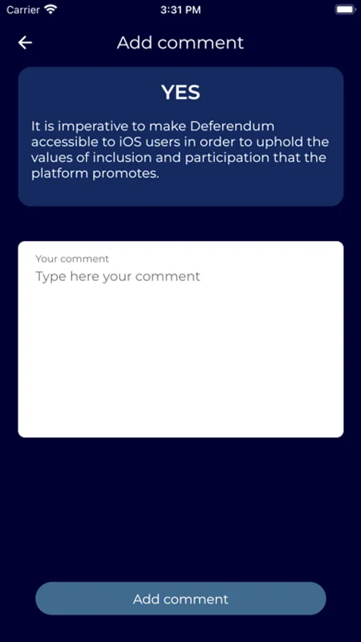 Aceasta înseamnă că dumneavoastră, utilizatorii noștri, veți avea un cuvânt direct de spus în viitorul aplicației Deferendum. Veți putea să propuneți idei, să votați propuneri și să aveți un impact real asupra direcției proiectului nostru.